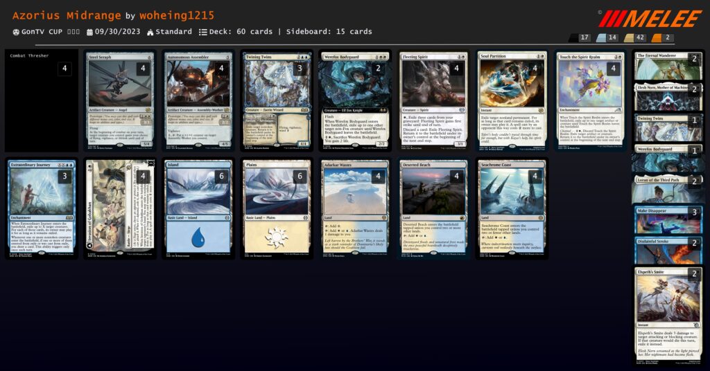 「GonTV CUP 前夜祭」のスタンダードにて《撚り合わせる双子》入りの「アゾリウスミッドレンジ」が優勝していました。