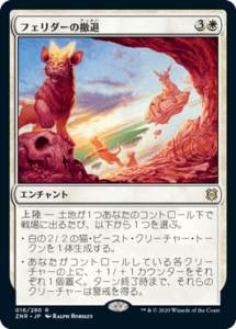 +1/+1カウンターと警戒の付与だと条件は付きますが《フェリダーの撤退/Felidar Retreat》が比較的近いカードとなっています。