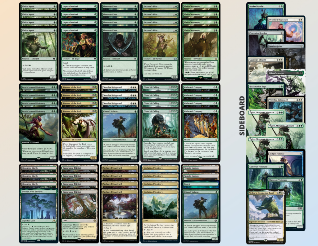 パイオニアの「Pioneer Preliminary 2023-10-10 (1), 7th Place, 3-1」という結果を残した「アブザンエルフ」のデッキリストになります。