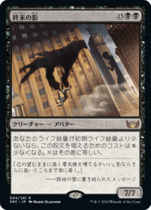 似たようなデメリットを持つカードとして《終末の影/Shadow of Mortality》があります。こちらはライフによってマナ・コストの増減があります。